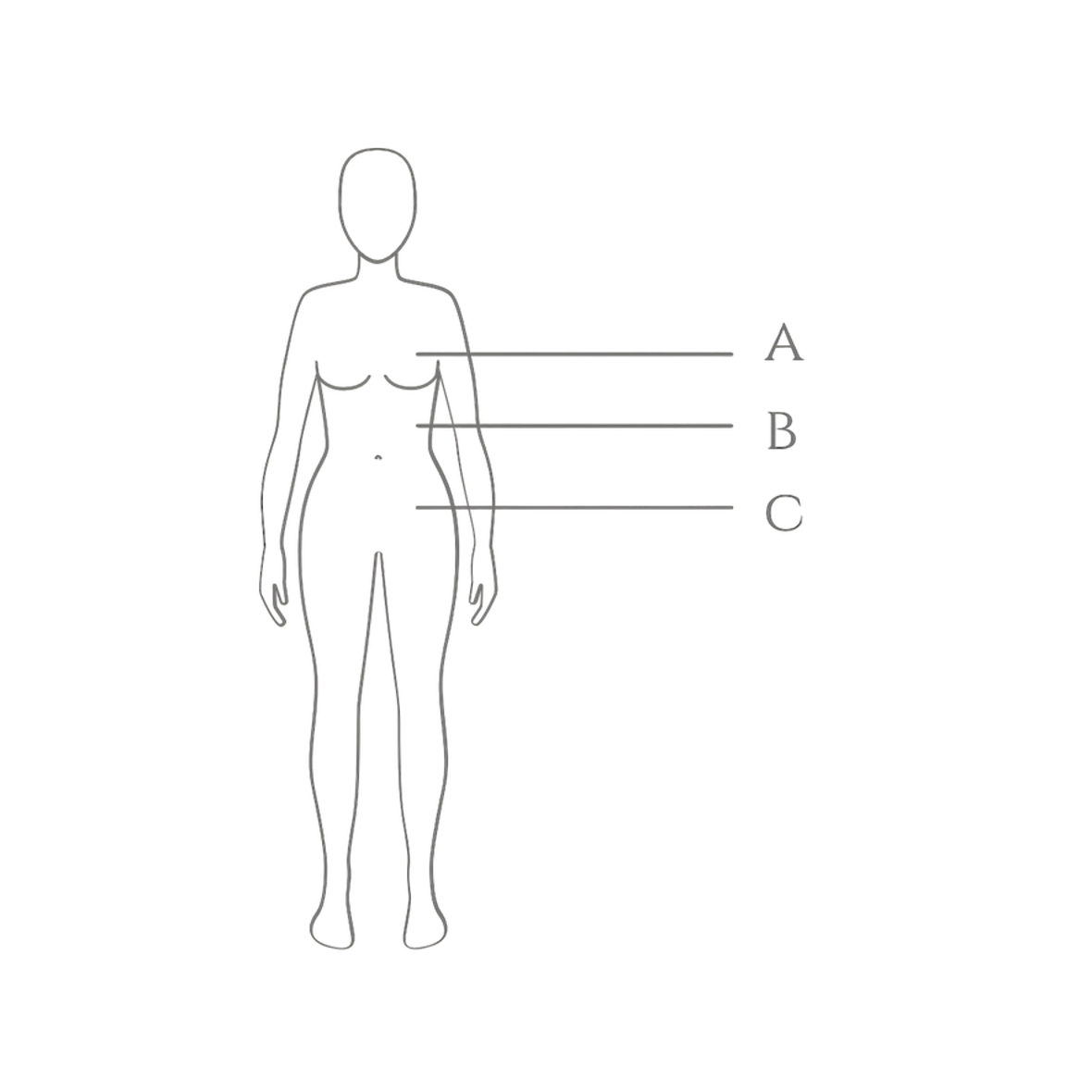 Ti consigliamo di misurare con un metro da sarta le tre circonferenze indicate nell'immagine qui sotto e seguire la nostra tabella di riferimento. Ricordati però che le taglie possono variare leggermente a seconda del costume che stai scegliendo, questo dipende dai materiali utilizzati e dai tipi di cucitura.